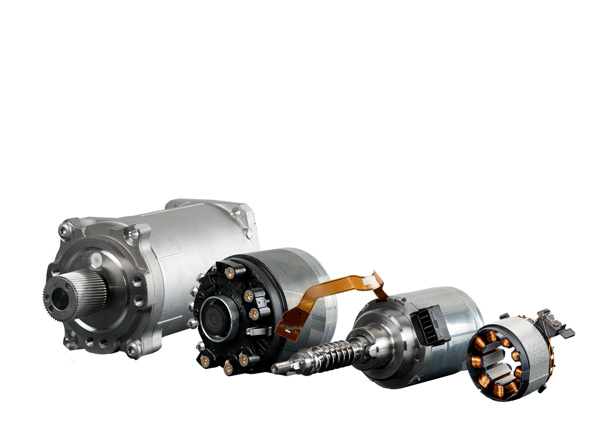 Our Permanent Magnet Brushless motors (PMBL), framed and frameless custom designs, enable fully integration and advanced safety & performance. Our products are available in a torque range of 1.0 to 10.0 Newton-meter and are used in steering systems such as:
